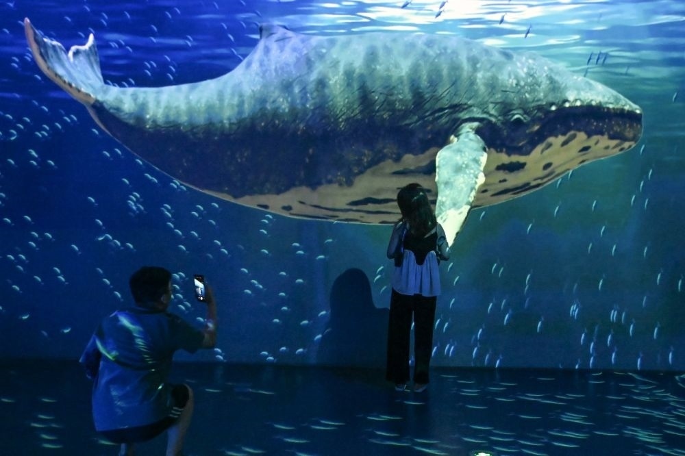 正值大型沉浸式互動數(shù)字藝術作品《鯨奇物語》光影藝術展首展上映,國家海洋博物館里人頭攢動。