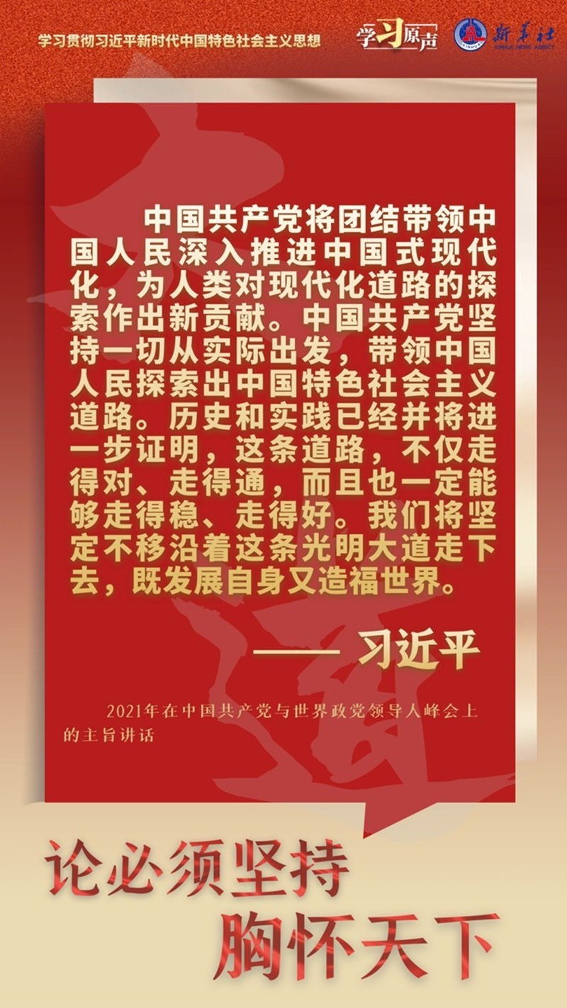中國共產(chǎn)黨是為中國人民謀幸福、為中華民族謀復(fù)興的黨,也是為人類謀進步、為世界謀大同的黨。我們要拓展世界眼光,深刻洞察人類發(fā)展進步潮流,積極回應(yīng)各國人民普遍關(guān)切,為解決人類面臨的共同問題作出貢獻,以海納百川的寬闊胸襟借鑒吸收人類一切優(yōu)秀文明成果,推動建設(shè)更加美好的世界。