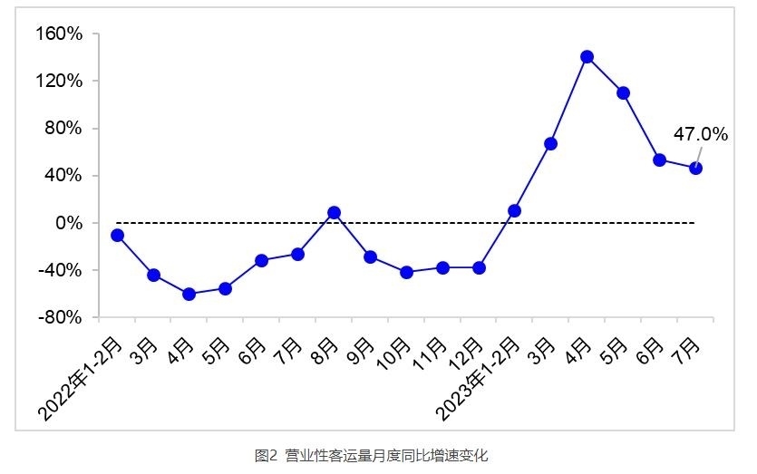 營(yíng)業(yè)性客運(yùn)方面,7月完成營(yíng)業(yè)性客運(yùn)量9.1億人,同比增長(zhǎng)47.0%。其中,完成公路客運(yùn)量4.1億人,同比增長(zhǎng)19.3%;完成水路客運(yùn)量3034萬(wàn)人,同比增長(zhǎng)78.3%。1—7月,完成營(yíng)業(yè)性客運(yùn)量52.3億人,同比增長(zhǎng)54.6%。其中,完成公路客運(yùn)量25.5億人,同比增長(zhǎng)18.7%;完成水路客運(yùn)量1.5億人,同比增長(zhǎng)128.8%。?