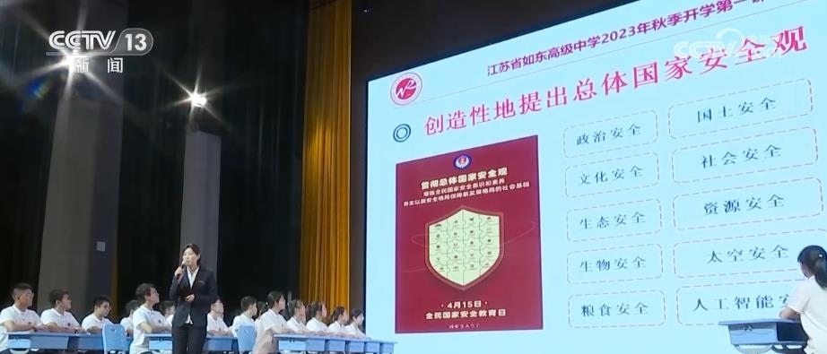 新學(xué)期,江蘇如東高級中學(xué)800多名高一新生,集中上了一堂主題為“筑牢國家安全基石,自覺維護(hù)國家安全”的思政課。通過觀看視頻、現(xiàn)場問答、教師授課等方式,引導(dǎo)同學(xué)們樹立國家安全意識。