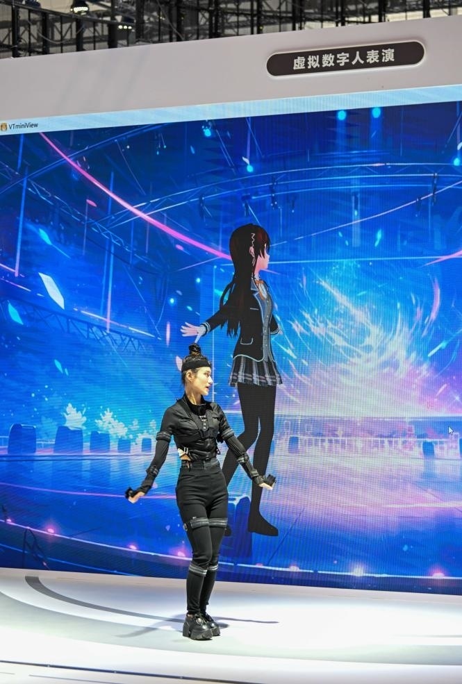 在中國電信股份有限公司天津分公司展臺,真人舞者身穿智能裝備,每做一個舞蹈動作巨型屏幕上的數(shù)字人都能實時精準再現(xiàn),就連舞者的面部表情都可以精準模仿……目前,由真人扮演驅(qū)動或人工智能驅(qū)動的數(shù)字人已被中國旅游行業(yè)廣泛應用。