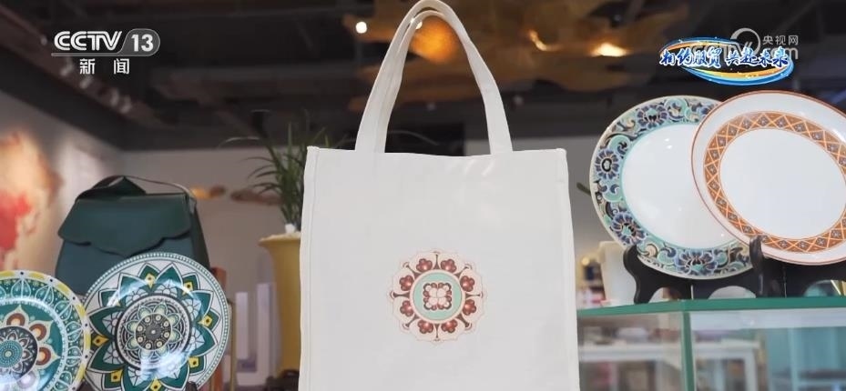 這個(gè)杯墊上面印的是來自敦煌壁畫的紋飾。如今,這些經(jīng)典的中國紋樣漂洋過海,在海外受到很多消費(fèi)者的喜愛。在山東濟(jì)南的“國家文化出口基地”,一張張?jiān)O(shè)計(jì)圖紙依托服務(wù)貿(mào)易,讓“國風(fēng)國潮”順利“出?!?。