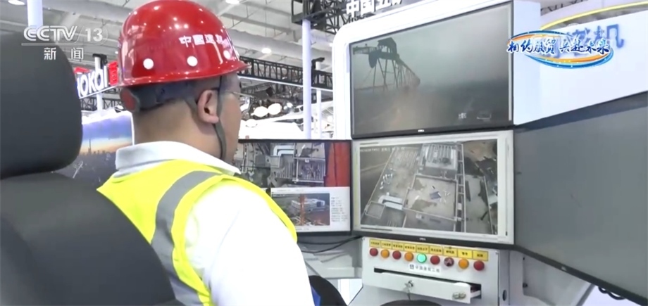 服貿(mào)會(huì)工作人員 趙晨曦:我現(xiàn)在控制的塔吊位于湖北省武漢市,距離展會(huì)現(xiàn)場1200公里?,F(xiàn)在我們來旋轉(zhuǎn)大臂,我們可以看到運(yùn)行過程非常流暢。接下來我們來落吊鉤,畫面也是幾乎沒有延遲。
