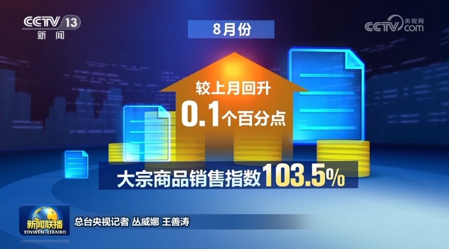 另外, 8月份大宗商品銷售指數(shù)為103.5%,較上月回升0.1個(gè)百分點(diǎn),終端市場(chǎng)及貿(mào)易商的采購(gòu)意愿有所增強(qiáng),市場(chǎng)需求整體向好。