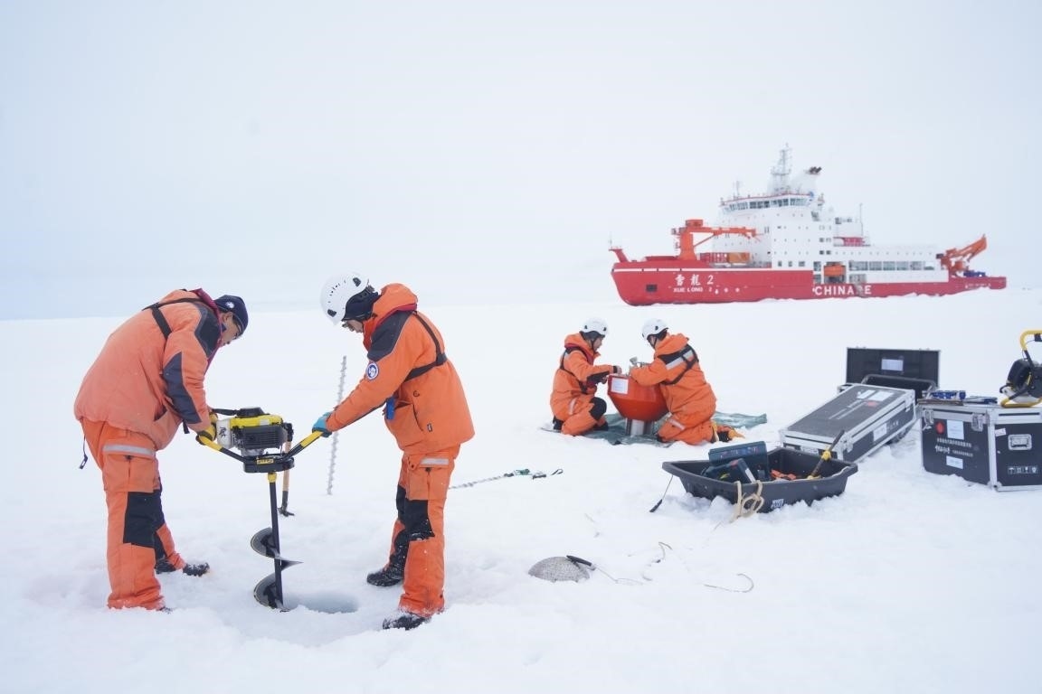 中國第13次北冰洋科學考察隊在北極點附近開展海冰綜合作業(yè)