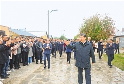 9月6日至8日,中共中央總書記、國家主席、中央軍委主席習(xí)近平在黑龍江考察。這是6日下午,習(xí)近平在大興安嶺地區(qū)漠河市北極村考察時,向當?shù)厝罕姄]手致意。新華社記者 鞠 鵬攝