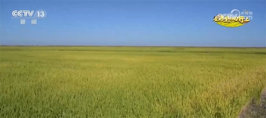 總臺(tái)央視記者 蔣樹(shù)林:這里是國(guó)家耐鹽堿水稻技術(shù)創(chuàng)新中心東北中心的千畝示范園,我手指的這個(gè)方向是沒(méi)有利用過(guò)的原始風(fēng)貌的鹽堿荒灘,這邊是已經(jīng)改造后生長(zhǎng)水稻的鹽堿地。如果后期沒(méi)有大的自然災(zāi)害,今年豐收會(huì)有一定基礎(chǔ)。