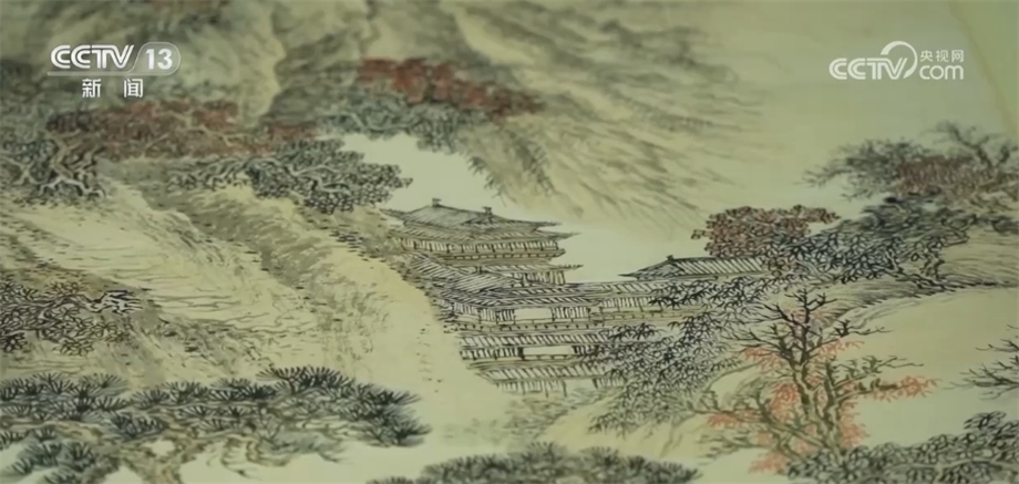 這幅《秋林書屋圖》,是清初四王之一、非常著名的畫家王翚在79歲的時(shí)候創(chuàng)作的,是珍貴的國(guó)家一級(jí)文物。這幅畫呈現(xiàn)的就是文人在山中茅屋當(dāng)中讀書的一個(gè)情景。雖然300多年的時(shí)間過(guò)去了,但是展開這幅畫,我們?nèi)匀豢梢钥吹椒浅ur明的色彩,蒼林翠竹與霜葉秋楓交相輝映,給我們帶來(lái)非常美的視覺(jué)享受。