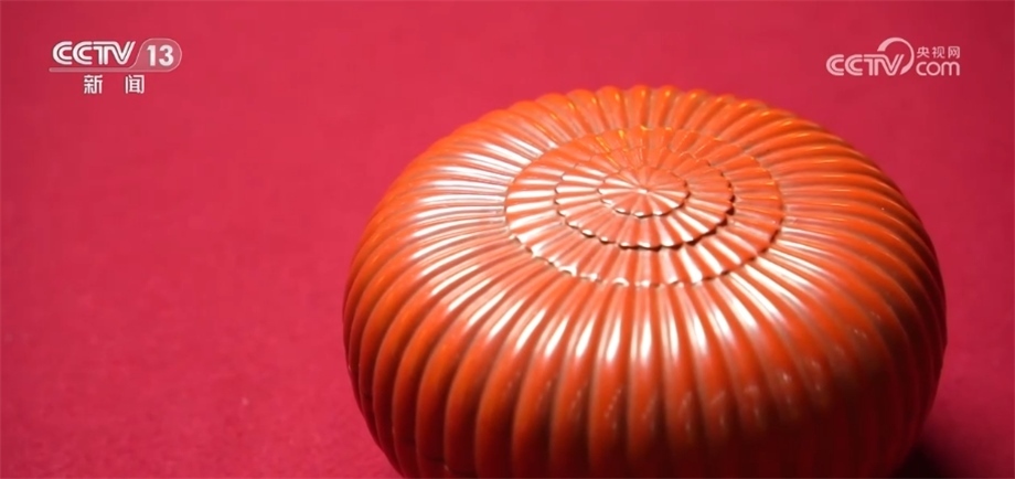總臺(tái)記者 楊雪:與多穆壺一樣,很多文物都是逐漸從生活用品演化成為藝術(shù)品的。像我們眼前看到的這一款清乾隆款朱漆菊瓣盒就是其中之一。它本來(lái)是盛放像干果、小點(diǎn)心等這些小件物品的盒子,在不斷使用的過(guò)程中,逐漸演化成為了宮廷藝術(shù)品。
