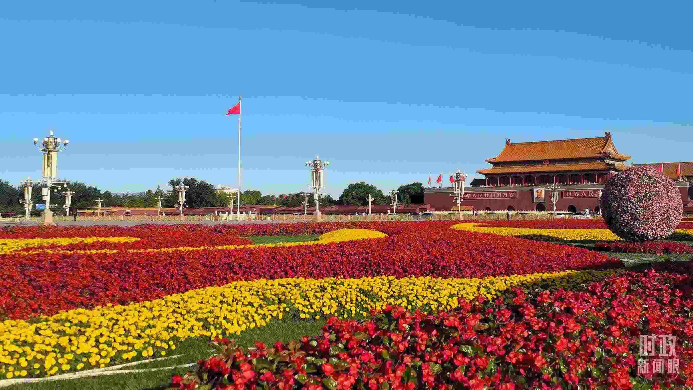△天安門廣場,花團(tuán)錦簇。(總臺央視記者韓銳拍攝)
