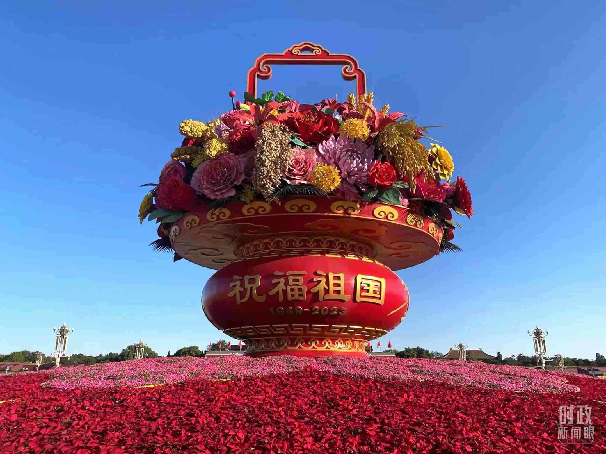 △“祝福祖國”巨型花籃。(總臺央視記者曹亞星拍攝)