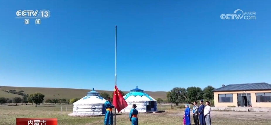 當清晨的陽光照亮草原,牧民霍高娃夫妻倆開始忙碌起來,每年的國慶期間,他們都會自發(fā)的舉行升國旗儀式。2023年,他們還邀請了周邊的牧民朋友一起,參與這個莊嚴的儀式。興安盟科右前旗滿族屯滿族鄉(xiāng)是內(nèi)蒙古自治區(qū)19個民族鄉(xiāng)之一,這里的牧民世代生活在邊境線上。2022年,滿族屯滿族鄉(xiāng)為156戶邊境牧民,修建了規(guī)范儀式標準的升旗臺,讓五星紅旗冉冉升起在祖國北疆的邊境線上。