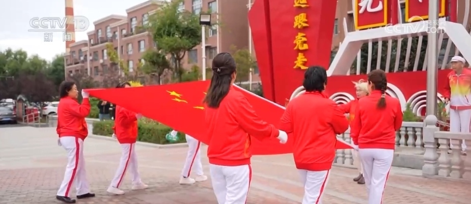 國慶假期,早上8時,小區(qū)升旗儀式準時開始。