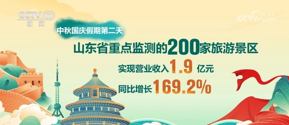 2023年中秋、國慶假期,山東旅游市場熱度攀升。9月30日,山東省重點監(jiān)測的200家旅游景區(qū),當(dāng)日接待游客267.9萬人次,同比增長131.5%;實現(xiàn)營業(yè)收入1.9億元,同比增長169.2%。