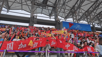 在滿場(chǎng)為中國(guó)隊(duì)加油的歡呼聲里