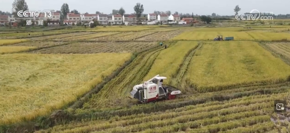 在湖北宜城,56萬畝水稻迎來豐收。大型收割機忙著搶收,收割、脫粒、稻桿粉碎還田一氣呵成。宜城也是連續(xù)陰雨天氣,當(dāng)?shù)?10臺(套)烘干機全部啟用作業(yè),最大限度助力糧食顆粒歸倉。