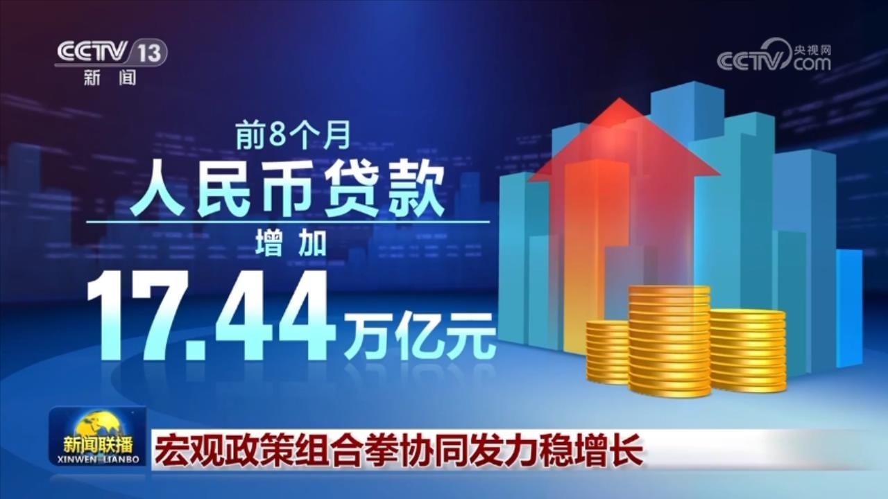 與此同時(shí),貨幣政策也更加精準(zhǔn)有力。今年以來,中國(guó)人民銀行兩次降準(zhǔn)共釋放中長(zhǎng)期流動(dòng)性超過1萬億元,兩次降息引導(dǎo)實(shí)體經(jīng)濟(jì)融資成本下行明顯,貨幣信貸合理增長(zhǎng)。前8個(gè)月,人民幣貸款增加17.44萬億元,為經(jīng)濟(jì)增長(zhǎng)提供了穩(wěn)固、有力的金融支撐。