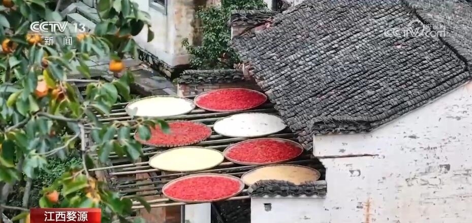 江西婺源:粉墻黛瓦柿子黃 “崖上古村”曬秋忙