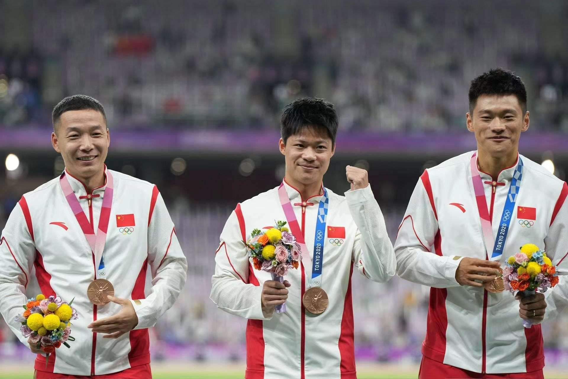 蘇炳添、謝震業(yè)、吳智強(qiáng)、湯星強(qiáng)參加了東京奧運(yùn)會田徑男子4×100米接力決賽,并在比賽中第四個(gè)沖過終點(diǎn)。去年2月,國際體育仲裁法庭裁定英國運(yùn)動(dòng)員烏賈在東京奧運(yùn)會期間違反了反興奮劑條例,取消英國隊(duì)男子4x100米接力成績并收回所獲銀牌,中國男子4x100米接力隊(duì)因此遞補(bǔ)獲得銅牌。這是中國男子4x100米接力隊(duì)首次在奧運(yùn)會上獲得獎(jiǎng)牌。