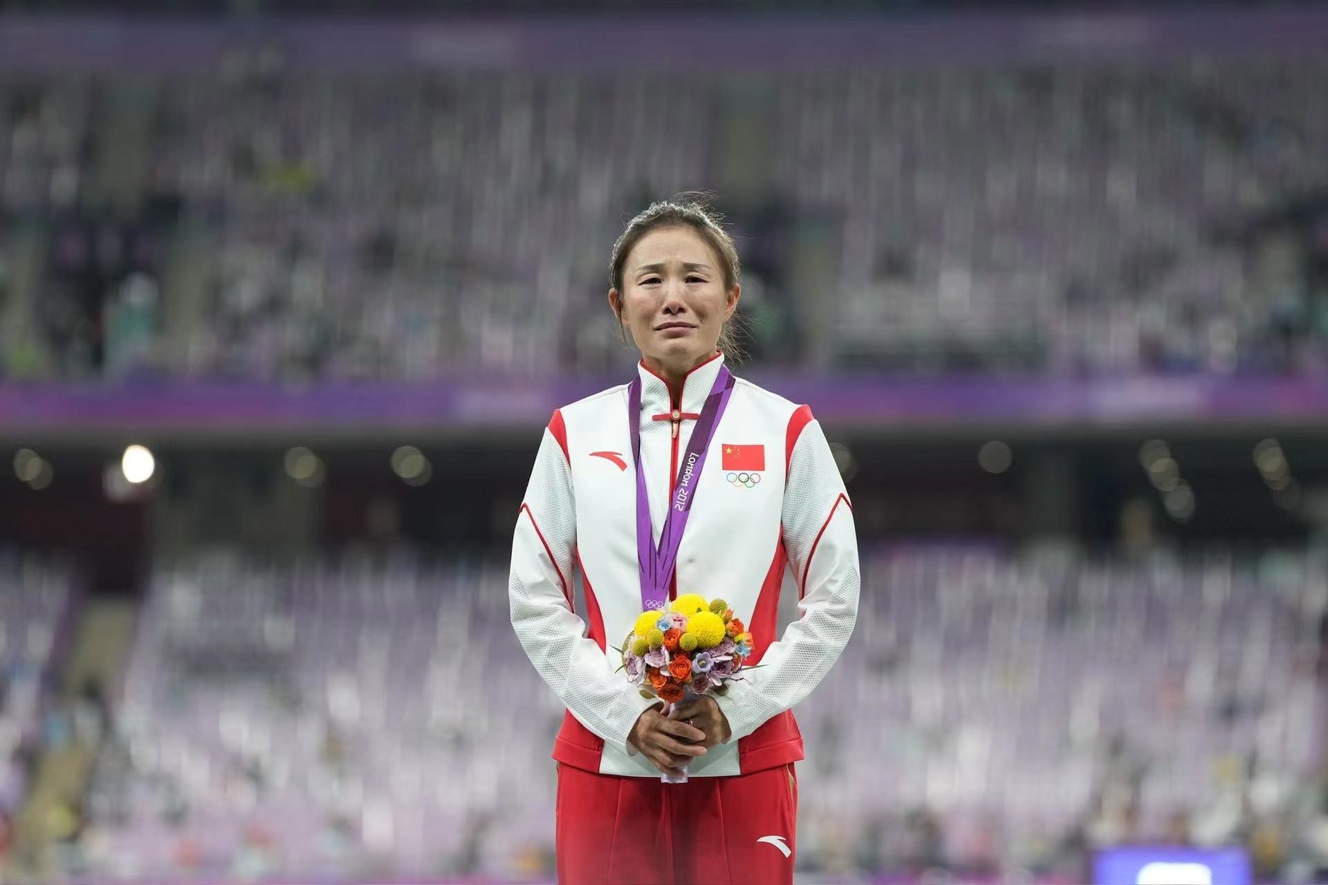 補(bǔ)發(fā)現(xiàn)場,首先頒發(fā)的是男子4×100米接力銅牌。四位中國小伙子笑著走上銅牌領(lǐng)獎(jiǎng)臺,接受頒獎(jiǎng)。隨后的競走頒獎(jiǎng)儀式上,在三位得獎(jiǎng)運(yùn)動(dòng)員獲頒獎(jiǎng)牌后,《義勇軍進(jìn)行曲》奏響,三面五星紅旗冉冉升起,切陽什姐眼中涌動(dòng)著晶瑩的淚花。