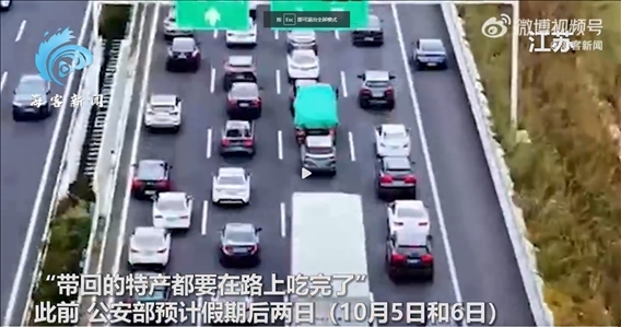 據(jù)??托侣劰俜轿⒉?,10月4日,中秋國慶假期進入第6天,多地陸續(xù)迎來返程高峰。實拍全國各地高速路況,紅色車燈連成線,車隊“龜速”行駛堵成長龍。有網(wǎng)友曬出高速路況畫面表示“特意提前三天回去,沒想到又堵路上了?!?、“帶回的特產(chǎn)都要在路上吃完了”。