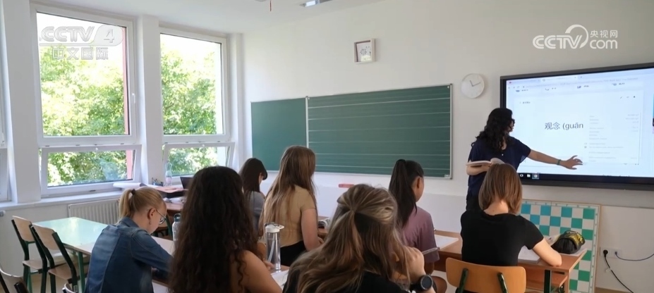 這是位于匈牙利首都布達(dá)佩斯的一所匈中雙語學(xué)校。周一上午的一節(jié)中文課,學(xué)生們正在學(xué)習(xí)一些職場常用的中文,每個人都聽得聚精會神。這所學(xué)校也是納入匈牙利國民教育體系的公立學(xué)校,在這里漢語是必修課。