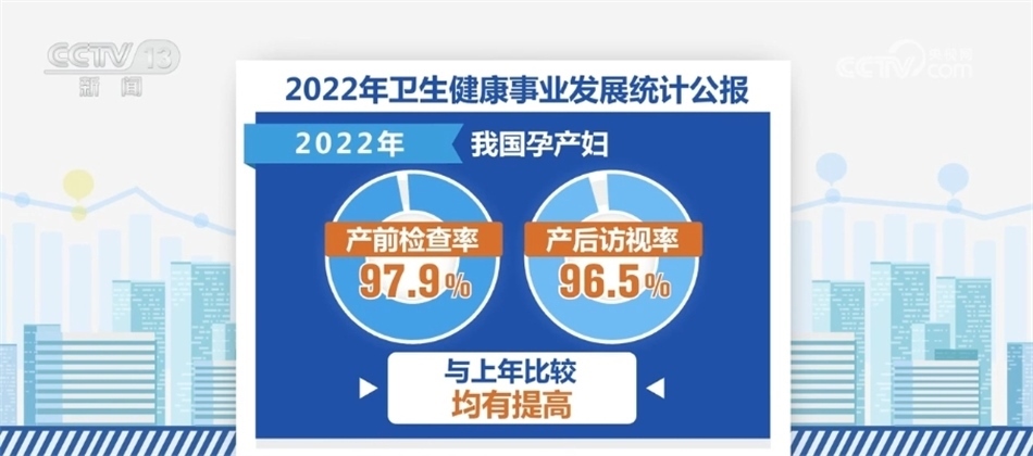 在婦幼健康方面,2022年我國(guó)孕產(chǎn)婦產(chǎn)前檢查率97.9%,產(chǎn)后訪視率96.5%。與上年比較,產(chǎn)前檢查率和產(chǎn)后訪視率均有提高。2022年全國(guó)住院分娩率為99.94%,基本實(shí)現(xiàn)全部住院分娩。據(jù)全國(guó)婦幼健康監(jiān)測(cè),2022年,我國(guó)5歲以下兒童死亡率6.8‰,嬰兒死亡率4.9‰,全國(guó)孕產(chǎn)婦死亡率為15.7/10萬(wàn),均有不同程度下降。