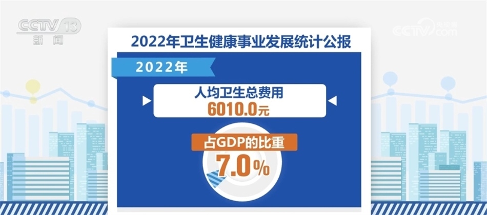 2022年全國(guó)衛(wèi)生總費(fèi)用初步推算為84846.7億元,其中,政府衛(wèi)生支出占28.2%,社會(huì)衛(wèi)生支出占44.8%,個(gè)人衛(wèi)生支出22914.5億元,占27.0%。人均衛(wèi)生總費(fèi)用6010.0元,衛(wèi)生總費(fèi)用占GDP的比重為7.0%。