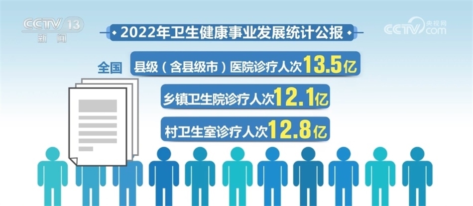 到2022年末,全國(guó)共有縣級(jí)(含縣級(jí)市)醫(yī)院17555所,鄉(xiāng)鎮(zhèn)衛(wèi)生院3.4萬(wàn)個(gè),村衛(wèi)生室58.8萬(wàn)個(gè),全國(guó)縣級(jí)(含縣級(jí)市)醫(yī)院診療人次13.5億,鄉(xiāng)鎮(zhèn)衛(wèi)生院診療人次12.1億,村衛(wèi)生室診療人次12.8億。設(shè)立社區(qū)衛(wèi)生服務(wù)中心(站)36448個(gè),全國(guó)社區(qū)衛(wèi)生服務(wù)中心診療人次6.9億,社區(qū)衛(wèi)生服務(wù)站診療人次1.4億。