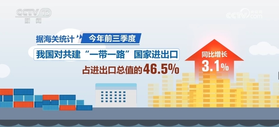 據(jù)海關(guān)統(tǒng)計(jì),2023年前三季度,我國對共建“一帶一路”國家進(jìn)出口同比增長3.1%,占進(jìn)出口總值的46.5%。