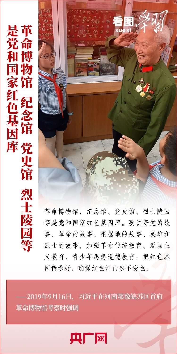 從井岡山“中國(guó)革命的搖籃”到大別山中鄂豫皖蘇區(qū)首府革命博物館,從西柏坡中共中央舊址到延安寶塔山下的革命舊址……黨的十八大以來(lái),習(xí)近平總書(shū)記在地方考察調(diào)研時(shí)多次到訪(fǎng)當(dāng)?shù)馗锩o(jì)念地,瞻仰革命歷史紀(jì)念場(chǎng)所,強(qiáng)調(diào)要用好紅色資源,賡續(xù)紅色血脈,確保紅色江山后繼有人、代代相傳。一起來(lái)學(xué)習(xí)!