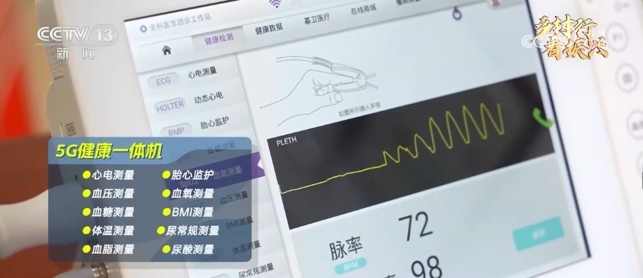這臺(tái)只有A4紙大小的5G健康一體機(jī),是由省里統(tǒng)一配備的。除了能快速完成十多項(xiàng)檢查,還能通過5G網(wǎng)絡(luò),隨時(shí)將心電、胎心數(shù)據(jù)上傳到市縣級(jí)醫(yī)院的診斷中心,由那里24小時(shí)值班的醫(yī)生進(jìn)行診斷并出具報(bào)告。