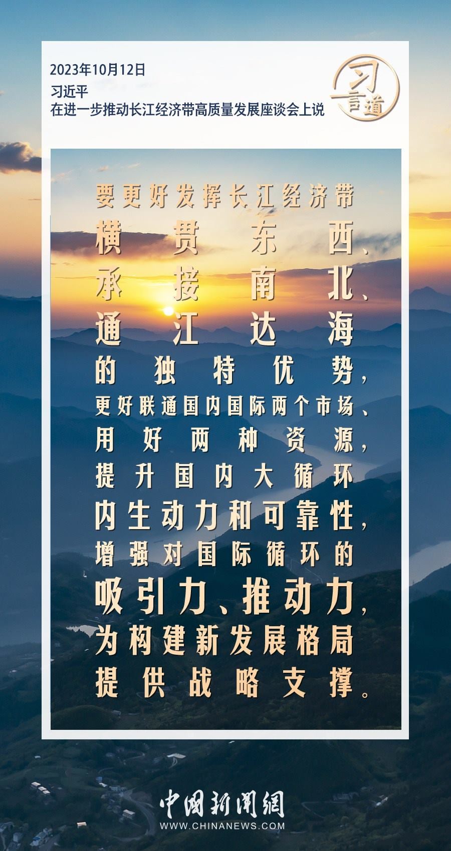 中共中央總書記、國家主席、中央軍委主席習近平12日下午在江西省南昌市主持召開進一步推動長江經(jīng)濟帶高質(zhì)量發(fā)展座談會并發(fā)表重要講話。習近平指出——