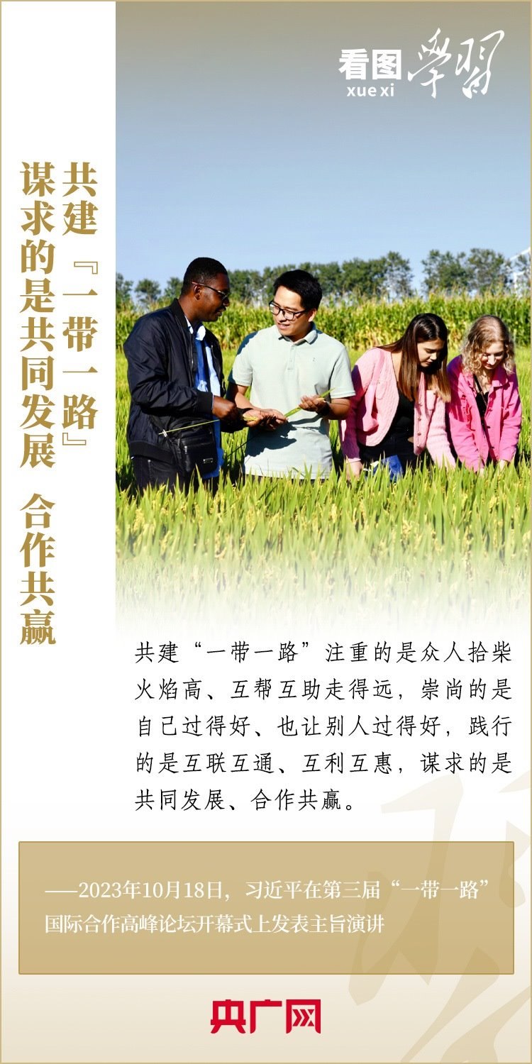10月18日,習近平主席出席第三屆“一帶一路”國際合作高峰論壇開幕式并發(fā)表主旨演講,深刻總結(jié)共建“一帶一路”倡議提出十年來取得的發(fā)展成果和經(jīng)驗,就中國支持高質(zhì)量共建“一帶一路”提出具體行動,強調(diào)要迎接共建“一帶一路”更高質(zhì)量、更高水平的新發(fā)展,推動實現(xiàn)世界各國的現(xiàn)代化,建設一個開放包容、互聯(lián)互通、共同發(fā)展的世界,共同推動構(gòu)建人類命運共同體!一起來學習!