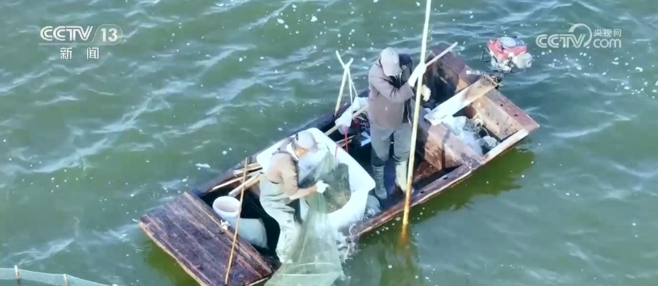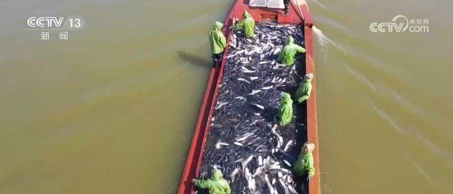 據(jù)了解,大明湖水域面積達(dá)到12.8萬畝,是江西第二大的內(nèi)陸湖泊,十分適合發(fā)展水產(chǎn)養(yǎng)殖。養(yǎng)殖的品種以青魚、草魚、鰱魚、鳙魚“四大家魚”為主。秋捕開始時(shí),漁業(yè)工人用特制的漁網(wǎng)將魚兒驅(qū)趕到特制的長條通道里,再逐步收起漁網(wǎng),工人們?cè)诹硪欢俗屑?xì)挑選活魚的品種和大小,體型不達(dá)標(biāo)的魚會(huì)被挑出來,放回湖中繼續(xù)養(yǎng)。據(jù)現(xiàn)場工人介紹,2023年因?yàn)轱L(fēng)調(diào)雨順,大明湖迎來一個(gè)豐收年,捕獲上來的活魚一般都在4斤以上,全年總產(chǎn)量預(yù)計(jì)超過200萬公斤。
