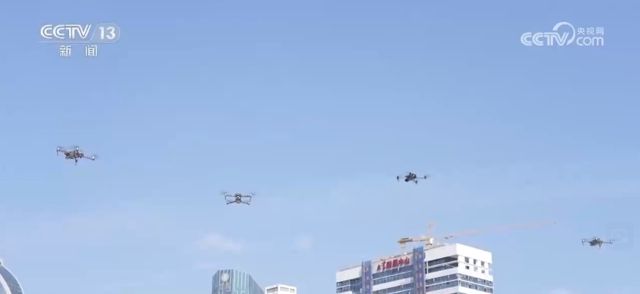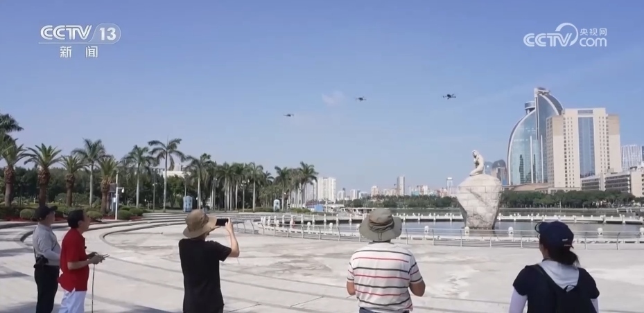 在廈門的白鷺洲上,四架無(wú)人機(jī)在空中列隊(duì)一字排開(kāi)。