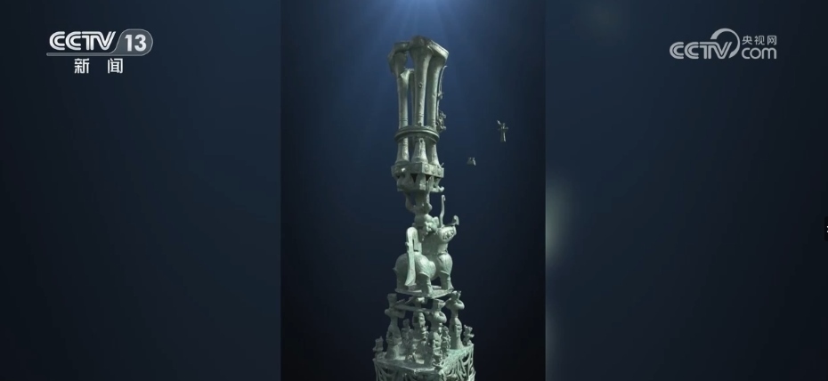 總臺央視記者 張春玲:很多考古發(fā)掘出來的文物是破碎甚至變形非常嚴(yán)重。頂尊銅人像、大神獸它們分別來自于8號坑和3號坑,“跨坑組合”成一個完整的鼎尊騎獸人像。通過最新的數(shù)字文物修復(fù)技術(shù)和3D打印技術(shù),最終一個完整組合的器型呈現(xiàn)在了觀眾面前。