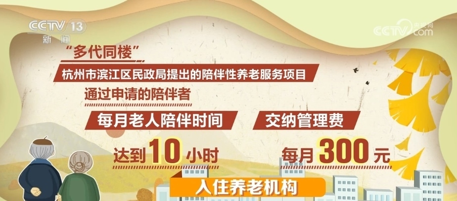“多代同樓”是由浙江省杭州市濱江區(qū)民政局提出的陪伴性養(yǎng)老服務(wù)項(xiàng)目。通過申請(qǐng)的陪伴者每月只需達(dá)到10小時(shí)的老人陪伴時(shí)間,并交納每月300元的管理費(fèi),就可以入住這家養(yǎng)老機(jī)構(gòu)。