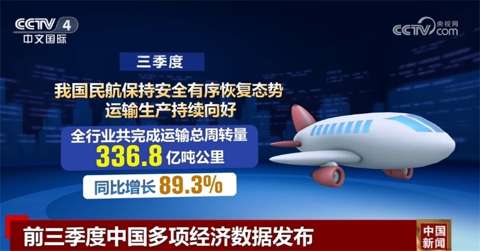 三季度,中國民航保持安全有序恢復態(tài)勢,運輸生產持續(xù)向好,全行業(yè)共完成運輸總周轉量336.8億噸公里,同比增長89.3%;客運市場需求旺盛,全行業(yè)共完成旅客運輸量1.8億人次,同比增長108.3%,行業(yè)客運規(guī)模創(chuàng)季度歷史新高。