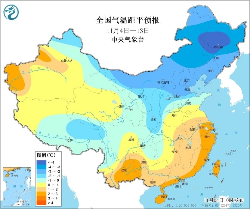 未來(lái)10天(11月4-13日),東北大部地區(qū)累計(jì)降水量有10~20毫米,東部部分地區(qū)有30~60毫米;江淮、江南、華南西部和北部等地累計(jì)降水量有20~60毫米,局地超過(guò)90毫米;上述大部地區(qū)累計(jì)降水量較常年同期偏多5成至1倍。