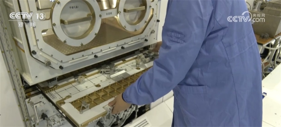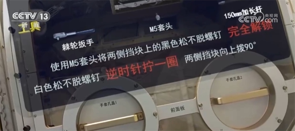 ?????? 中國科學院空間應用工程與技術中心研究員 張璐:這里面,我們主要是進行一些比如說小載荷、標準載荷的維修操作,包括有一些有密閉要求的載荷,我們可以通過更換手套進行操作。艙外有一些大型載荷有一些安裝、升級甚至拆裝的操作,我們可以通過這個移動維修平臺,把這個平臺拉開以后,它可以展開成一個大概900毫米x700毫米的一個大平板。艙外的這些大載荷可以在這個大平板上安裝固定,然后航天員在這個平板上結合內部豐富的各種載荷的接口,來進行相應的維修操作。