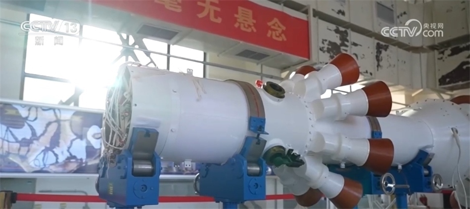 航天科技集團一院長征二號F運載火箭總體設計師 陳牧野:逃逸主發(fā)動機,大家可以看到它噴管相比其他的都比較大,它的推力也是這幾個發(fā)動機中最大的。它的作用就是當火箭發(fā)生重大故障的時候、可能威脅到航天員安全的時候,它把整個逃逸飛行器帶離故障火箭,然后能夠使逃逸飛行器打到一安全的區(qū)域。
