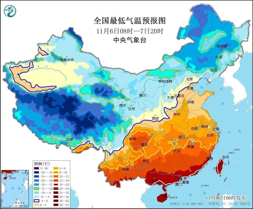 寒潮藍(lán)色預(yù)警:受強(qiáng)冷空氣影響,預(yù)計(jì),11月6日08時(shí)至11月7日20時(shí),內(nèi)蒙古東部、東北地區(qū)中南部、黃淮東部、江淮東部和南部、江南東部等地大部將先后降溫6~8℃,其中,內(nèi)蒙古東南部、東北地區(qū)中南部等地部分地區(qū)降溫可達(dá)10~14℃。最低氣溫0℃線將位于河北北部、天津北部、山西南部至陜西關(guān)中平原、甘肅東南部一帶,長江中下游以北地區(qū)有4~6級偏北風(fēng),陣風(fēng)7~9級,局地可達(dá)10級;6日至7日夜間,渤海、黃海、東海等海域有7~8級風(fēng),最大陣風(fēng)9~11級。