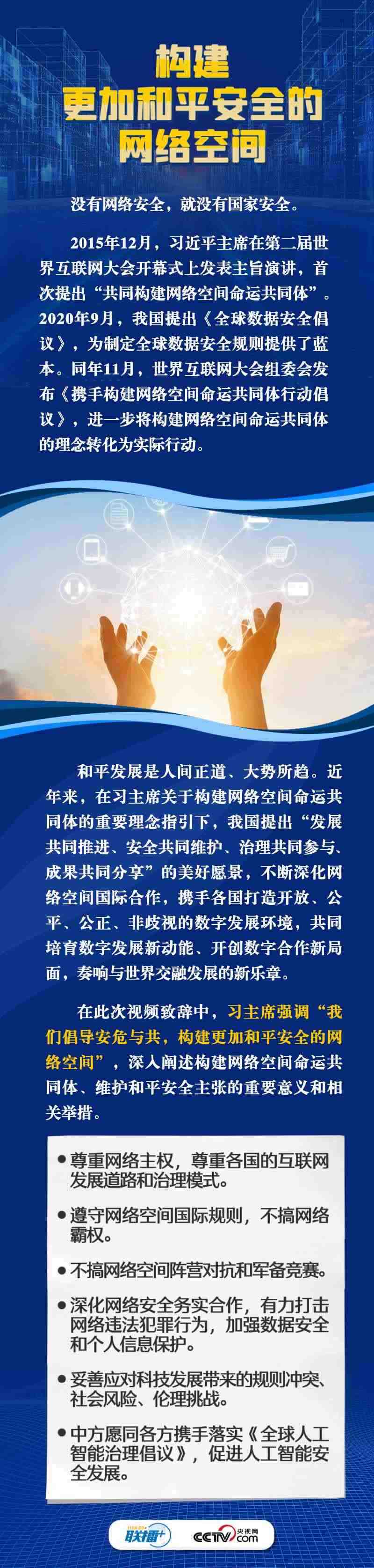 11月8日,習(xí)近平主席向2023年世界互聯(lián)網(wǎng)大會(huì)烏鎮(zhèn)峰會(huì)開幕式發(fā)表視頻致辭。自2014年首屆世界互聯(lián)網(wǎng)大會(huì)舉辦以來,習(xí)主席通過發(fā)表主旨演講、視頻致辭或者向大會(huì)發(fā)來賀信等不同形式關(guān)心大會(huì)的舉辦,始終倡導(dǎo)構(gòu)建網(wǎng)絡(luò)空間命運(yùn)共同體,得到國(guó)際社會(huì)廣泛認(rèn)同和積極響應(yīng)。