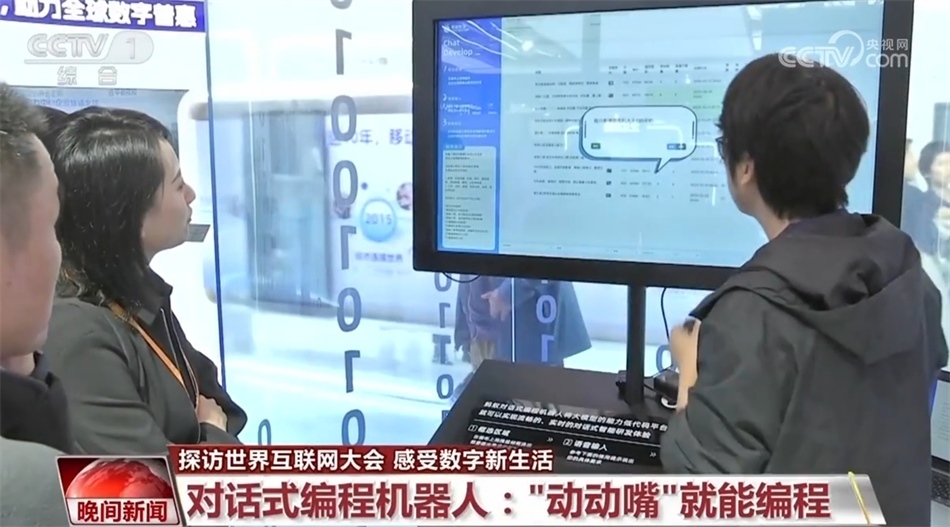 在此次互聯(lián)網(wǎng)之光博覽會(huì)的數(shù)字技術(shù)展區(qū),有數(shù)十家科技企業(yè)都展出了人工智能大語言模型應(yīng)用產(chǎn)品,覆蓋了日常生活、生產(chǎn)制造、安全防護(hù)等多個(gè)行業(yè)領(lǐng)域。這是一款對(duì)話式編程機(jī)器人,通過基于人工智能大模型的應(yīng)用平臺(tái),非專業(yè)人士不用學(xué)寫代碼,只要“動(dòng)動(dòng)嘴”就能編寫相關(guān)應(yīng)用程序,并通過指令來完成多種日??此品爆嵉牟僮鳌?/p>