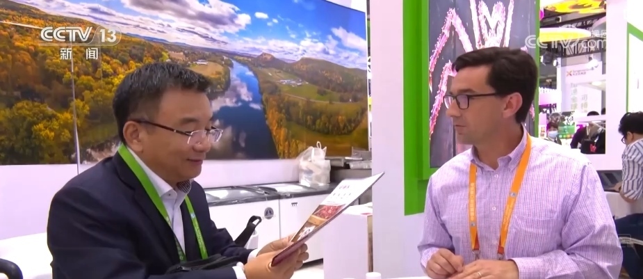 進(jìn)博會的最后一天,記者來到美國食品和農(nóng)產(chǎn)品館時,美國參展商克里斯依舊在緊張地和客戶對接洽談,此時距離閉幕只剩下不到6個小時。