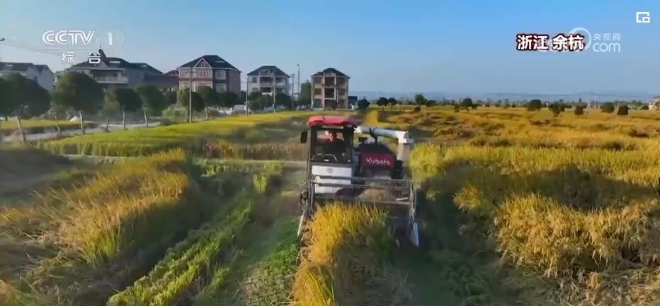 在浙江杭州余杭區(qū),14萬畝水稻迎來了豐收。據(jù)了解,今年這里稻田的畝產(chǎn)達到了750公斤,比去年增長了約10%。
