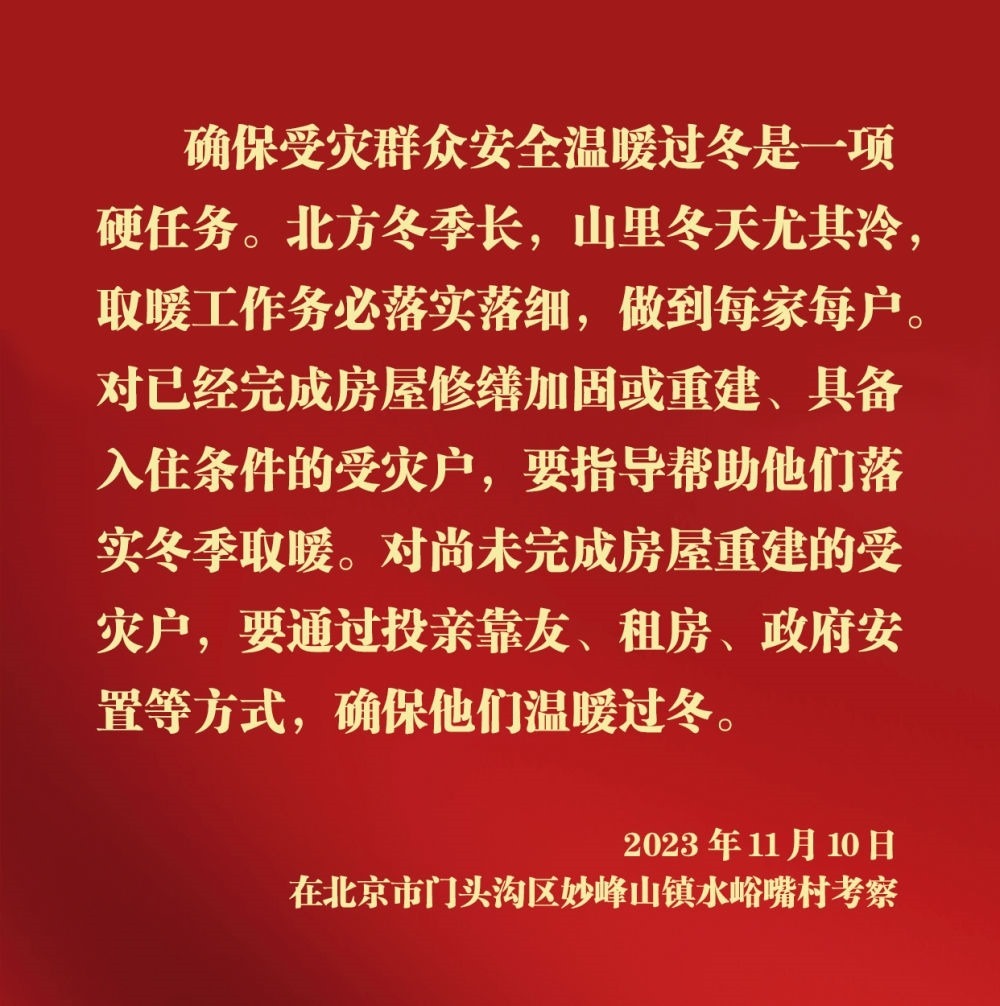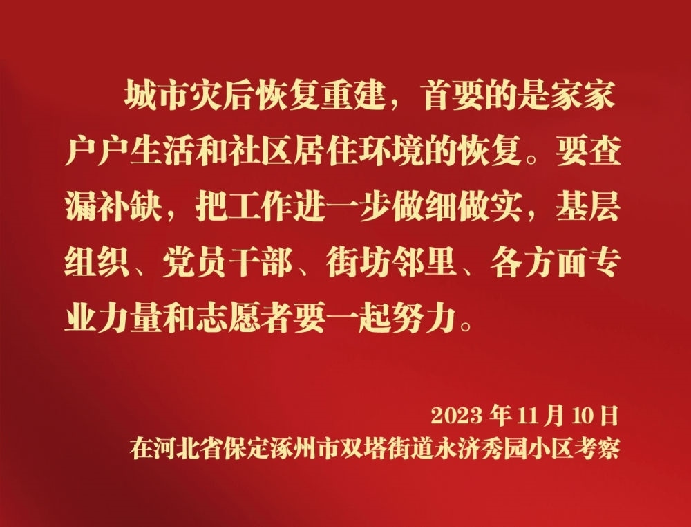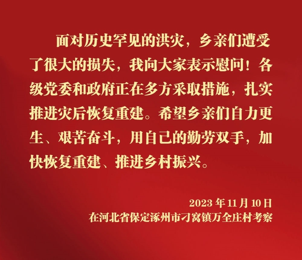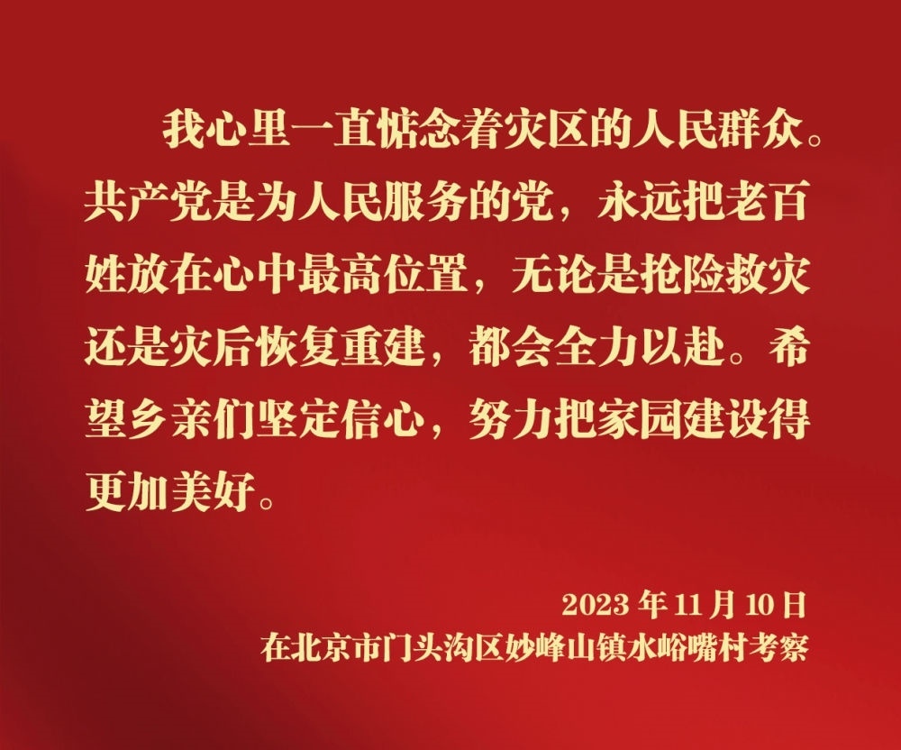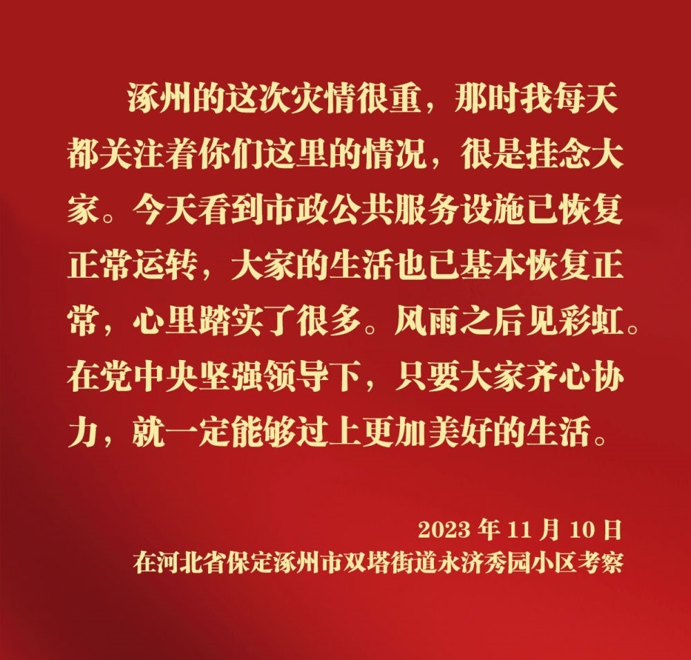 11月10日,中共中央總書記、國家主席、中央軍委主席習(xí)近平在北京、河北考察災(zāi)后恢復(fù)重建工作。他先后來到門頭溝、保定等地,實地了解災(zāi)后恢復(fù)重建情況。