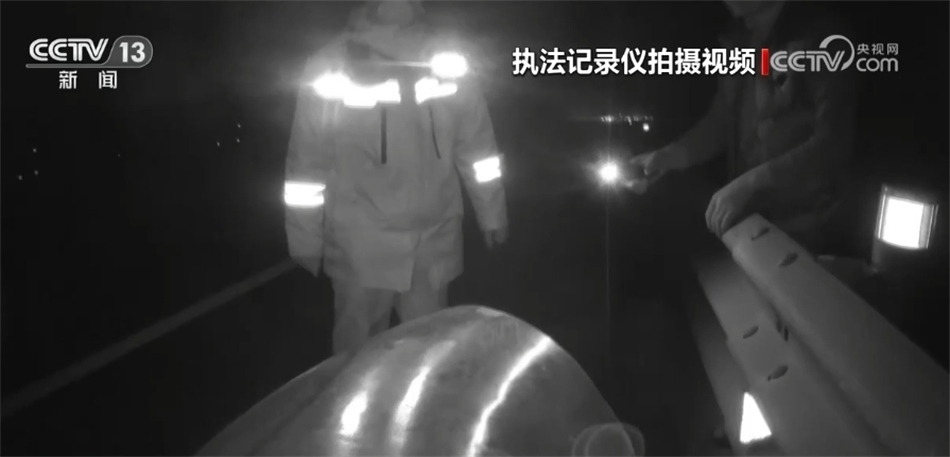 再來(lái)看前些天發(fā)生在京臺(tái)高速山東德州段的這一幕。晚上八點(diǎn)多,德州高速交警在轄區(qū)巡查時(shí),發(fā)現(xiàn)在京臺(tái)高速往濟(jì)南方向的這一處內(nèi)側(cè)行車道上,掉落了一個(gè)大型管道,前方不遠(yuǎn)處有一輛大型貨車正停在應(yīng)急車道內(nèi),而貨車駕駛?cè)苏驹谥醒胱o(hù)欄內(nèi),用手電筒提醒過(guò)往車輛。由于晚上途經(jīng)的大都是大型車輛,夜間視距較差,情況十分危險(xiǎn),現(xiàn)場(chǎng)交警分工配合,通過(guò)多次嘗試終于跑到了遺落物的旁邊進(jìn)行處置。