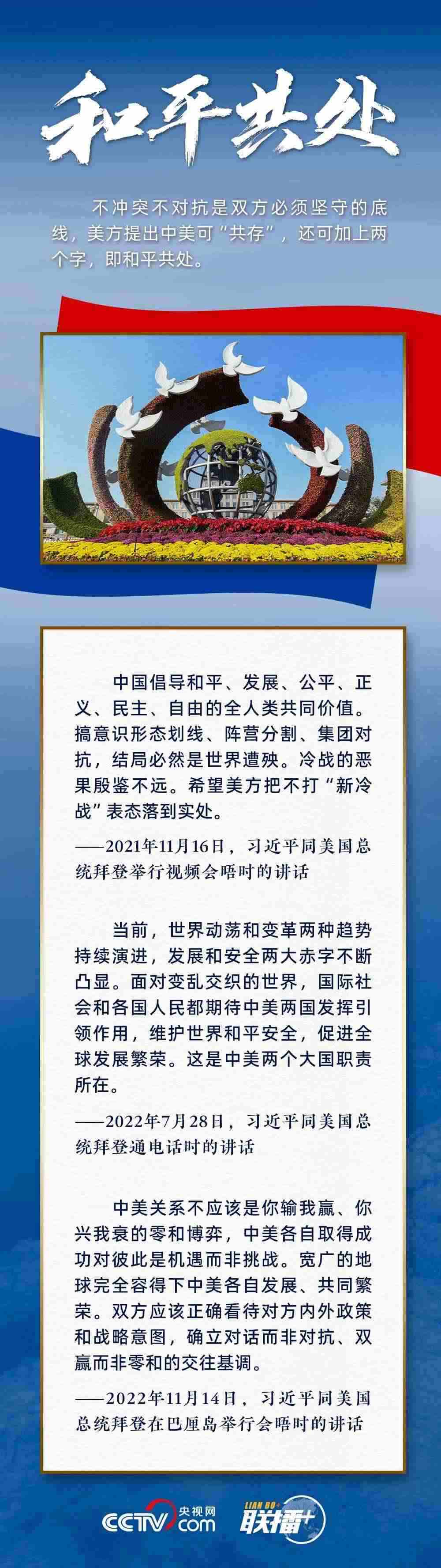 “中美不沖突、不對抗、和平共處,這是兩國最基本的共同利益?!绷曋飨赋觯袷貒H關(guān)系基本準則和中美三個聯(lián)合公報,這是雙方管控矛盾分歧、防止對抗沖突的關(guān)鍵,也是中美關(guān)系最重要的防護和安全網(wǎng)。